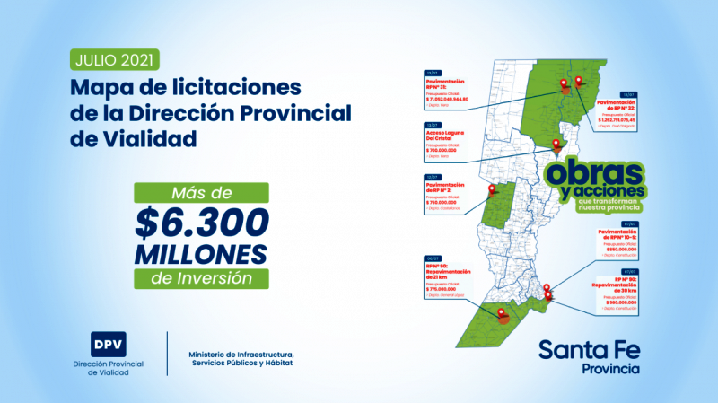 Los trabajos corresponden a siete obras que se llevarán a cabo en los departamentos Castellanos, General López, Constitución, Vera y General Obligado. Todas las licitaciones comprenden presupuestos oficiales de más de 700 millones de pesos y llegan a superar los 1.260 millones, con un plazo de ejecución de 10 a 15 meses.