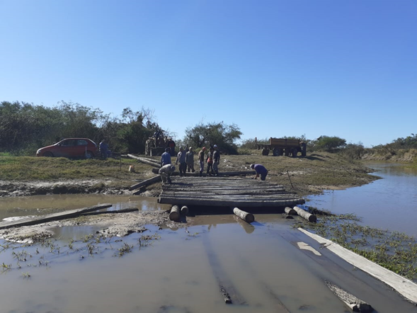 . continuación de la preparación del puente alternativo para el traslado de los postes de cemento.
