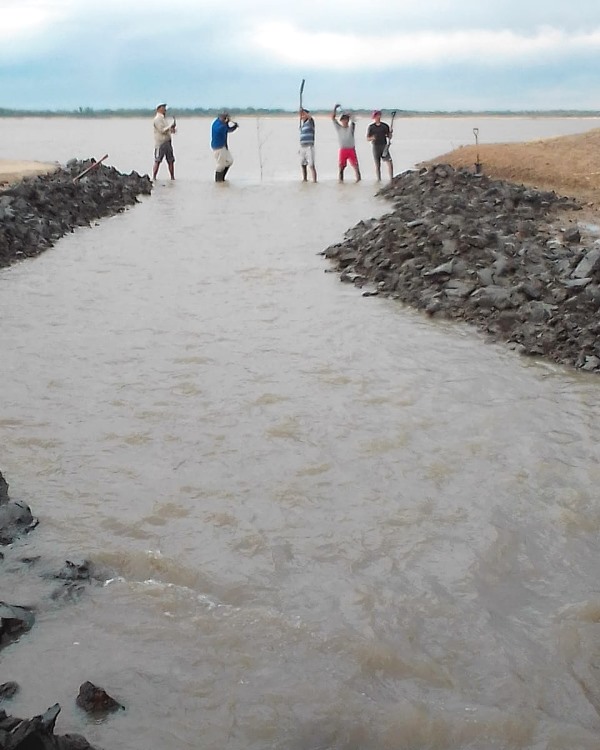 Lo que hicieron, fue de acompañar la importante tarea de pescadores tosquenses abriendo un canal que permita el ingreso del agua proveniente del Río Paraná.