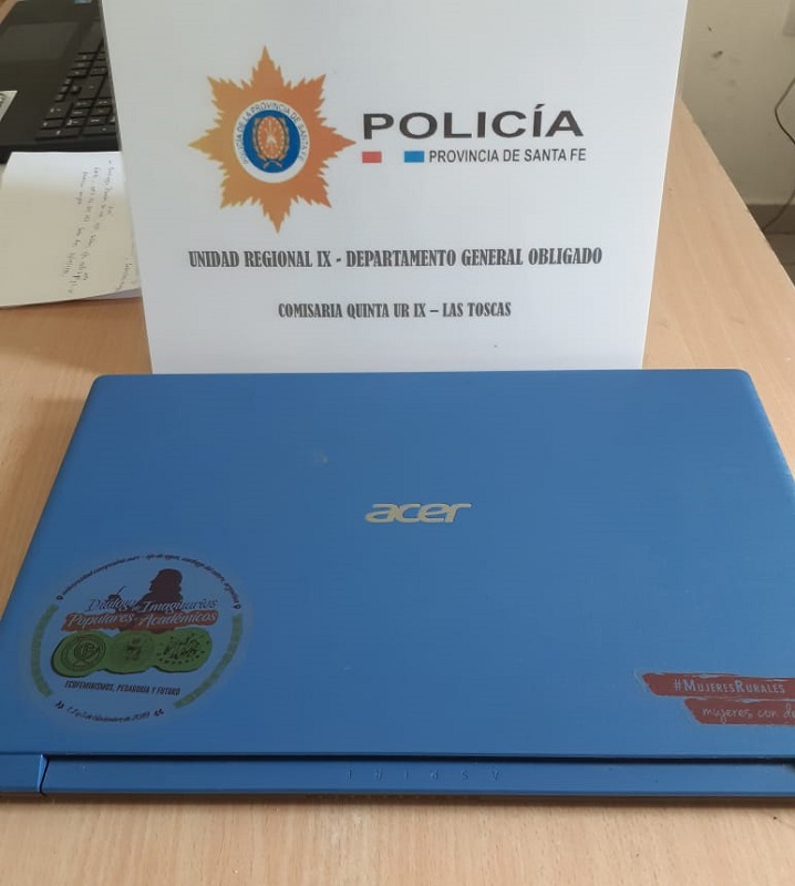 Fecha 25/07/21 – Siendo las 09:45 horas, recepcionó denuncia personal de la Comisaria V UR IX, a víctima quien manifestó que en la fecha se percató que persona/s ignorada/s previo violentar una ventana de su vivienda, sustrajeron del interior (01) una notebook marca ACER, modelo ASPIRE 3, de color azul.