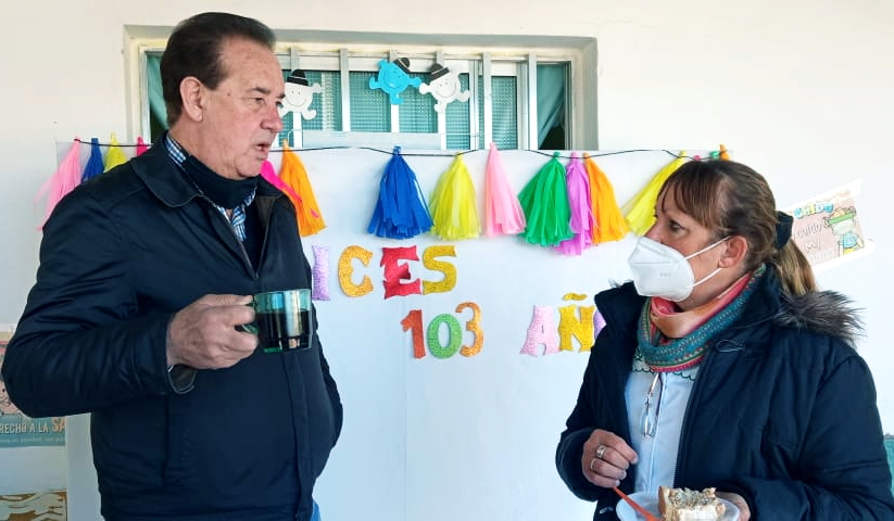 La presencia del senador se dio con motivo del 103° aniversario de ese establecimiento educativo, siendo recibido allí por directivos, docentes y alumnos.