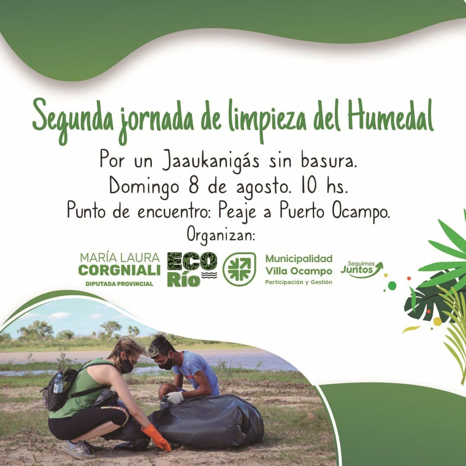 La Dirección de Turismo de la Municipalidad de Villa Ocampo, junto a la diputada provincial María Laura Corgniali y el grupo Eco Río invitan a participar de la Segunda Jornada de Limpieza del Humedal – “Por un Jaaukanigás sin basura”.
