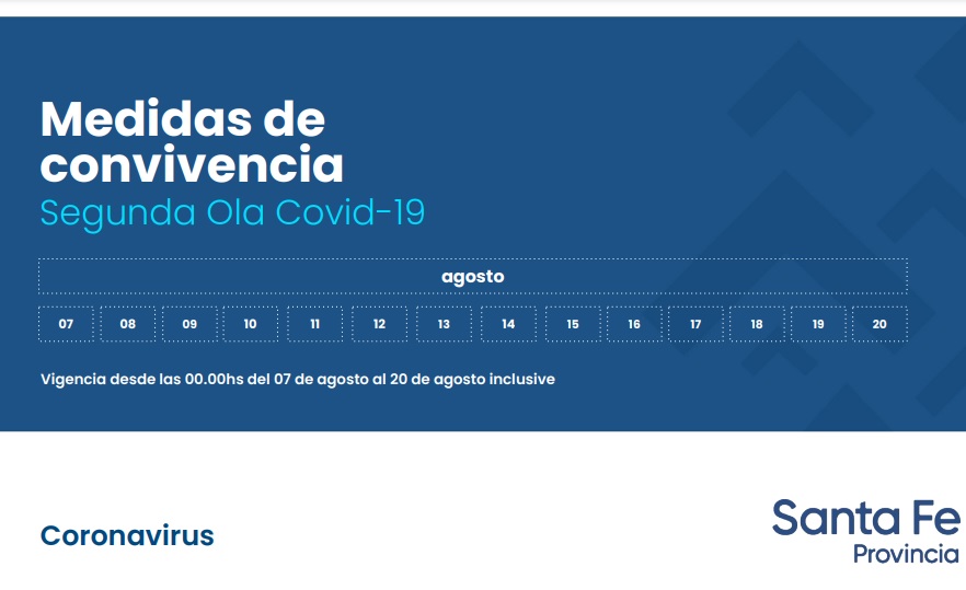 En el marco de la pandemia del Covid-19, el gobierno de la provincia de Santa Fe dio a conocer las nuevas medidas de convivencia que regirán en todo el territorio desde la 0 hora del día 7 y hasta el 20 de agosto de 2021 inclusive.