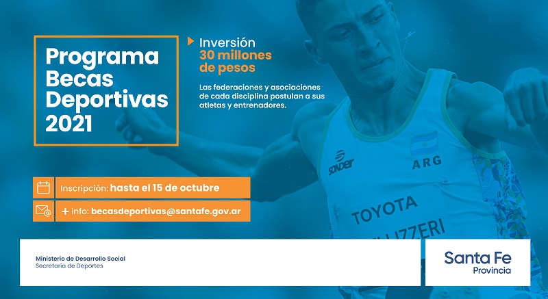 El Ministerio de Desarrollo Social, a través de la Secretaría de Deportes, abrió la inscripción al programa de Becas Deportivas 2021. La propuesta, que este año realizará una inversión cercana a los $30.000.000, está destinada a deportistas y entrenadoras/es, que podrán realizar la inscripción y postulación a través de las federaciones y asociaciones provinciales hasta el 15 de octubre.