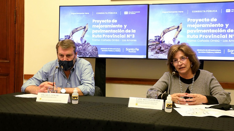 El Ministerio de Infraestructura, Servicios Públicos y Hábitat, a través de la Dirección Provincial de Vialidad, llevó adelante este lunes la consulta pública para escuchar y recabar las opiniones de los santafesinos y santafesinas que desearon expresarse sobre el proyecto para las obras de Mejoramiento y pavimentación Ruta Provincial Nº3, tramo Cañada Ombú – Los Amores, departamento Vera.