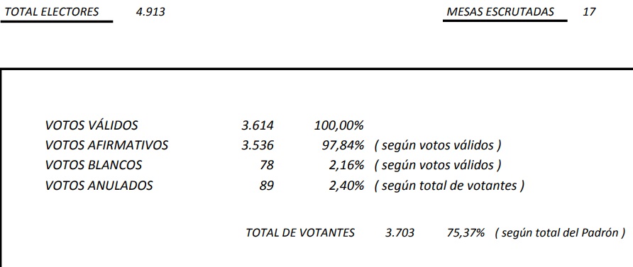 . Hubo un total de 3.703 votantes, representando el 75,37% de participación.