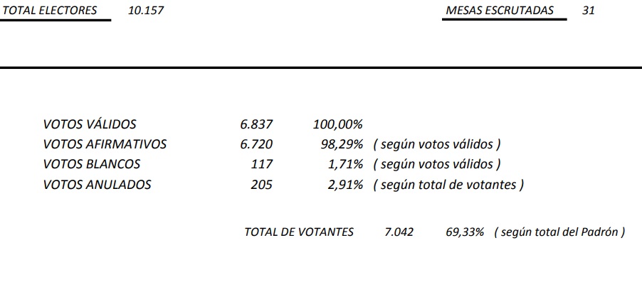 . Hubo un total de 7.042 votantes, representando el 69,33% de participación.