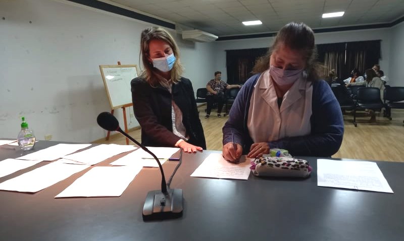 La secretaria de Hacienda y Finanzas de la Municipalidad de Villa Ocampo, Gabriela Yaccuzzi, acompañada por integrantes del gabinete municipal, hicieron entrega de las partidas correspondientes a los dos primeros trimestres del Boleto Educativo Rural.