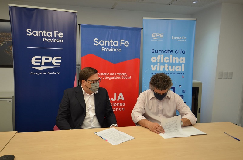 El presidente de la Empresa Provincial de la Energía (EPE), Mauricio Caussi y el director de la Caja de Jubilaciones y Pensiones, Humberto Giobergia, firmaron un convenio, en el marco del proyecto EPE Digital, con el fin de ampliar la utilización de la oficina virtual a las personas que realizan gestiones en ese organismo.
