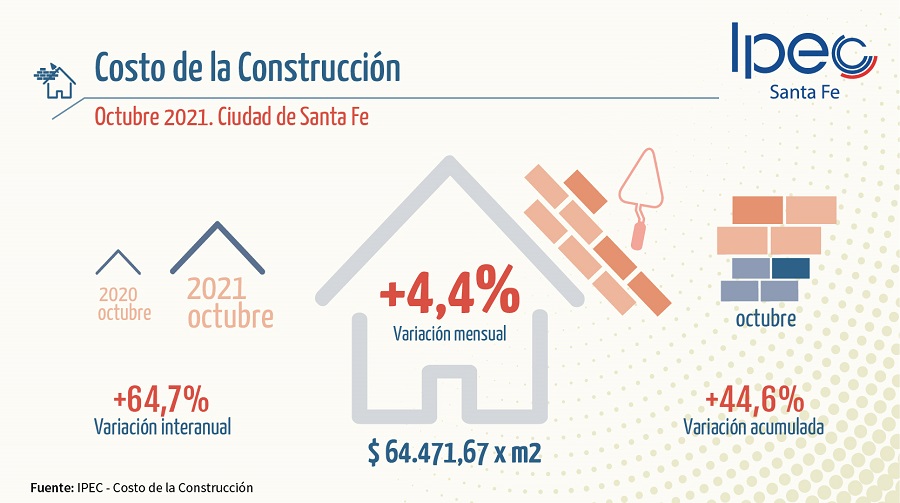 El nivel general del costo de la construcción (CC) en la ciudad de Santa Fe correspondiente a octubre de 2021
