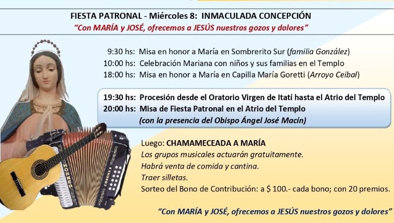 Como Parroquia estamos de fiesta, ya que tenemos a la Virgen Inmaculada Concepción como patrona y guía. Con la misión de la Virgen y San José y la vivencia de la novena nos preparamos desde la fe a esta fiesta tan solemne dentro de la Iglesia.