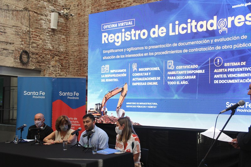 El ministerio de Infraestructura, Servicios Públicos y Hábitat, presentó la oficina virtual del Registro de Licitadores de la Provincia de Santa Fe, ante la presencia de empresarios y cooperativas de la construcción, federaciones cooperativas, representantes de APYME, autoridades provinciales y municipales.