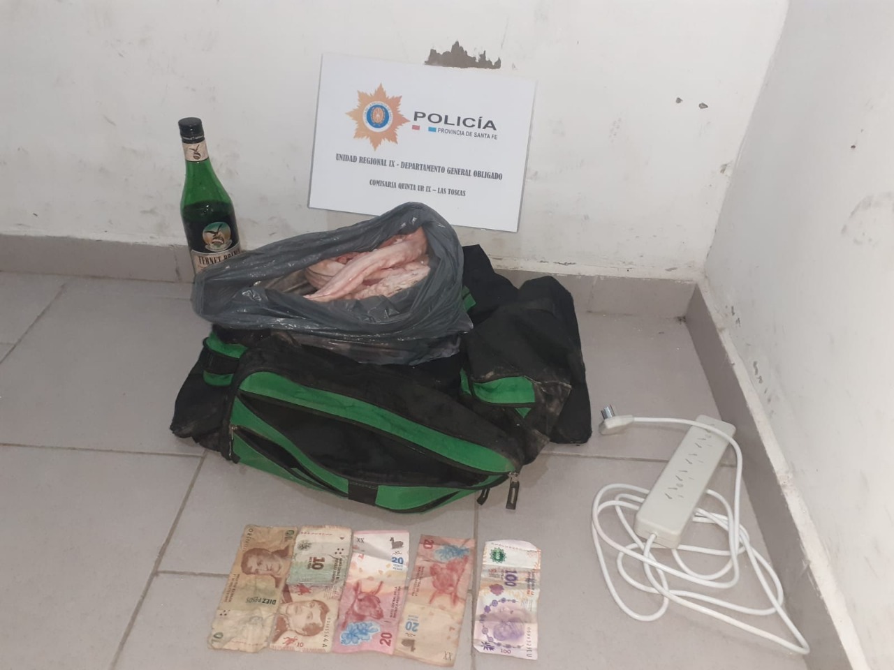 Se realizaron amplios patrullajes por inmediaciones del lugar del hecho, logrando localización del acusado, identificándolo como S.J.D de 22 años de edad, domiciliado en esa ciudad quien llevaba consigo un bolso con las características aportadas por denunciante y en el interior del mismo varios elementos que resultaron coincidentes con los denunciados, por lo que se procede a su secuestro preventivo; como así también se procede a la aprehensión del mismo.