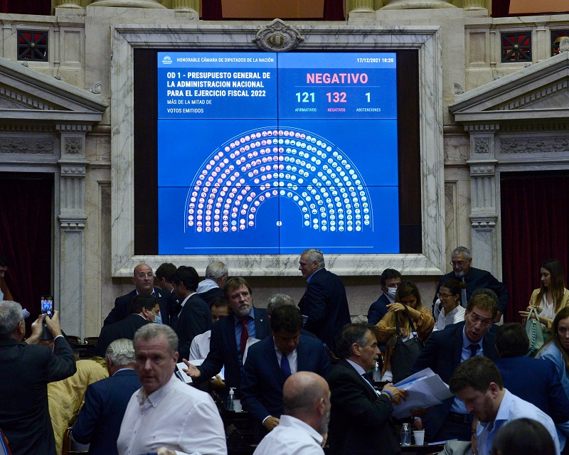 Con 121 votos afirmativos, 132 negativos y 1 abstención, queda rechazado el proyecto de ley de Presupuesto General de la Administración Nacional para el Ejercicio Fiscal del año 2022.