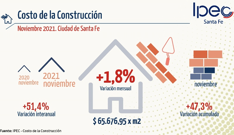 El Instituto Provincial de Estadística y Censos publicó el informe: «Costo de la Construcción de la ciudad de Santa Fe (CC)» correspondiente a noviembre de 2021.
