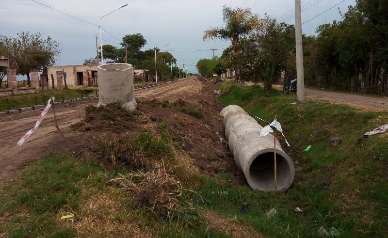 Como así también, colocan veinte tubos de hormigón para continuar con el cordón cuneta de calle Islas Malvinas.