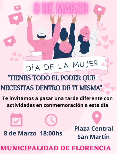 La Municipalidad de Florencia y la Secretaría de Cultura invitan a sumarse a las celebraciones que habrán en Florencia para conmemorar el Día Internacional de la Mujer en Florencia.