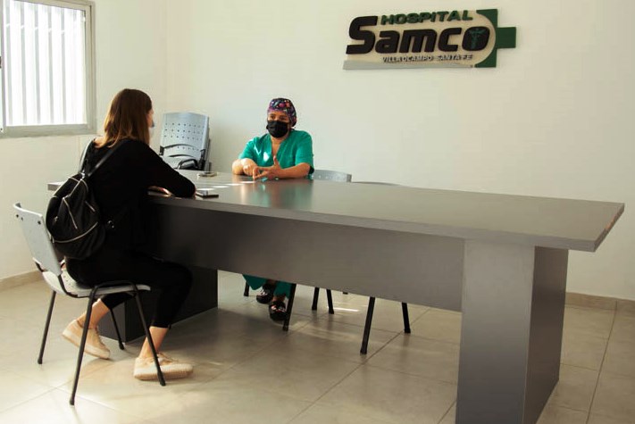 La diputada provincial María Laura Corgniali visitó el SAMCO «Dr. Esteban Galmarini» y conversó con sus directivos, Dra. Olga Sánchez y Dr. Daniel Velozo.