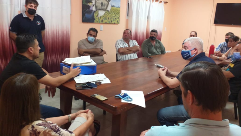 El personal de la EPE, el secretario de gobierno Hugo Martínez, los concejales del oficialismo y el secretario de la producción Sebastián Cettour mantuvieron una reunión con productores ganaderos que serán beneficiados con el tendido eléctrico a Puerto Piracuá.