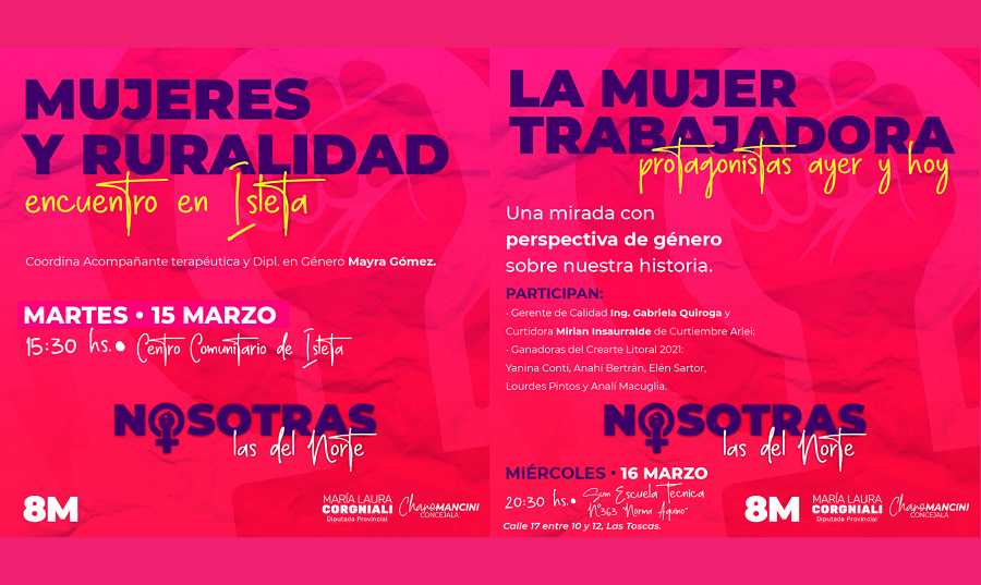La Legisladora Provincial, María Laura Corgniali, informa a la comunidad que se estarán desarrollando dos nuevas actividades de la agenda regional Nosotras, las del Norte organizadas junto a la Concejala de Las Toscas, María del Rosario “Charo” Mancini.