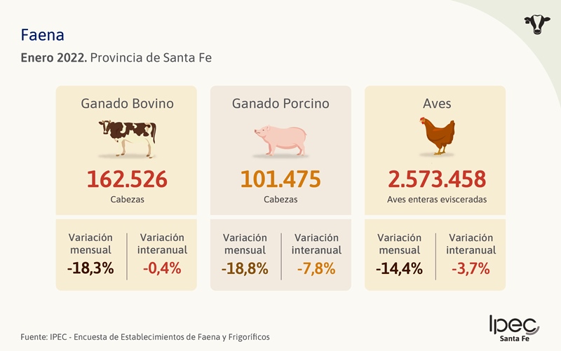 El Instituto Provincial de Estadística y Censos publicó el informe: Faena en la provincia de Santa Fe, correspondiente a enero 2022.