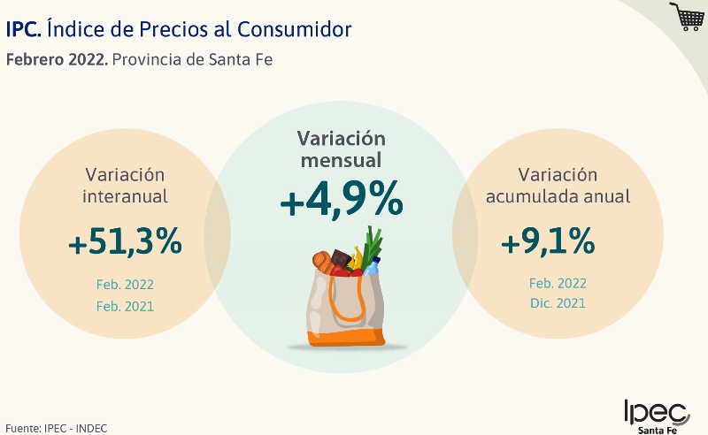 IPCSF-0222El Instituto Provincial de Estadística y Censos publicó el Índice de Precios al Consumidor correspondiente a febrero de 2022.