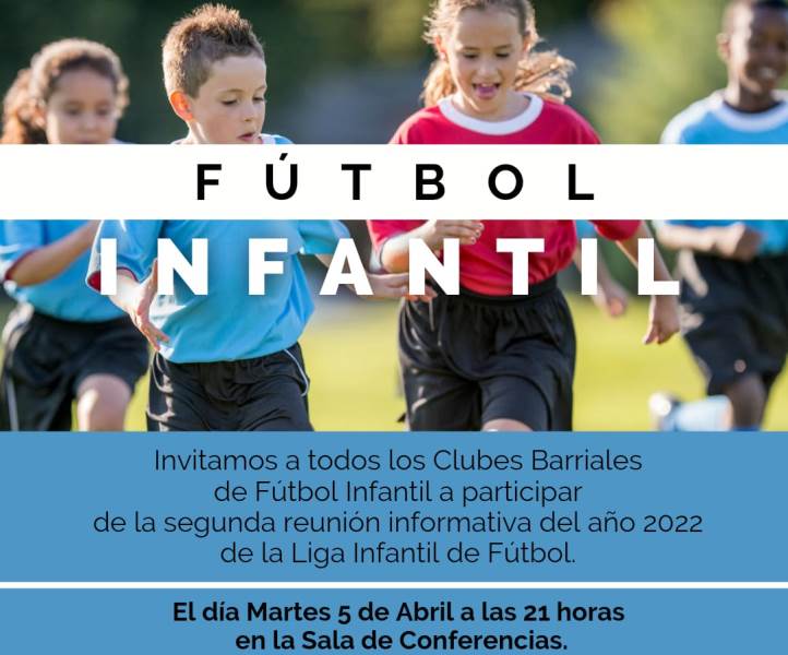 Invitan a todos los Clubes Barriales de Fútbol Infantil a participar de la segunda reunión informativa del año 2022, este martes 5 de Abril a las 21 horas en la Sala de Conferencias de la Municipalidad.