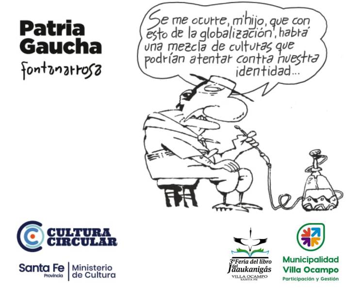 La Secretaría de Cultura y Comunicación de la Municipalidad de Villa Ocampo informa que la Muestra “Patria Gaucha” de Roberto Fontanarrosa formará parte de la 3º Feria del Libro del Jaaukanigás, presentada por el programa “Cultura Circular” del Ministerio de Cultura de la Provincia, desde el 20 de mayo al 5 de junio en el Complejo Educativo “Gral. Manuel Obligado”.