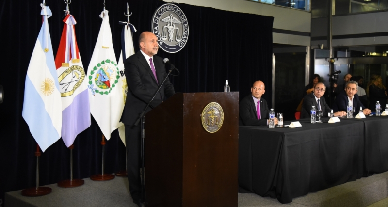 A continuación, remarcó la importancia de Rosario y la región: “Hablamos desde el centro más importante del mundo de producción de soja y derivados. Hablamos desde el segundo nodo portuario agroexportador”.