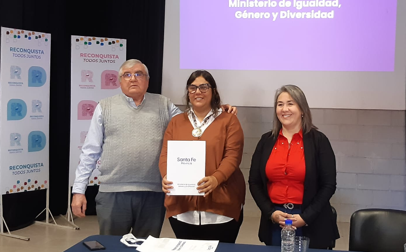 Este miércoles 11 de mayo, en las instalaciones de la Casa del Bicentenario de la ciudad de Reconquista, el intendente Rubén Carlos Quain firmó un convenio con la ministra Florencia Marinaro del Ministerio de Igualdad, Género y Diversidad de la Provincia.