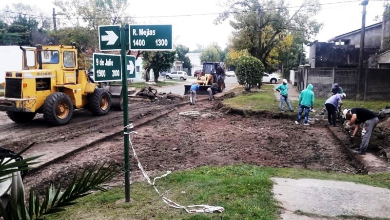 – Reconstrucción del pavimento con hormigón elaborado en la intersección de las calles Mejías y 9 de Julio (Barrio Norte).