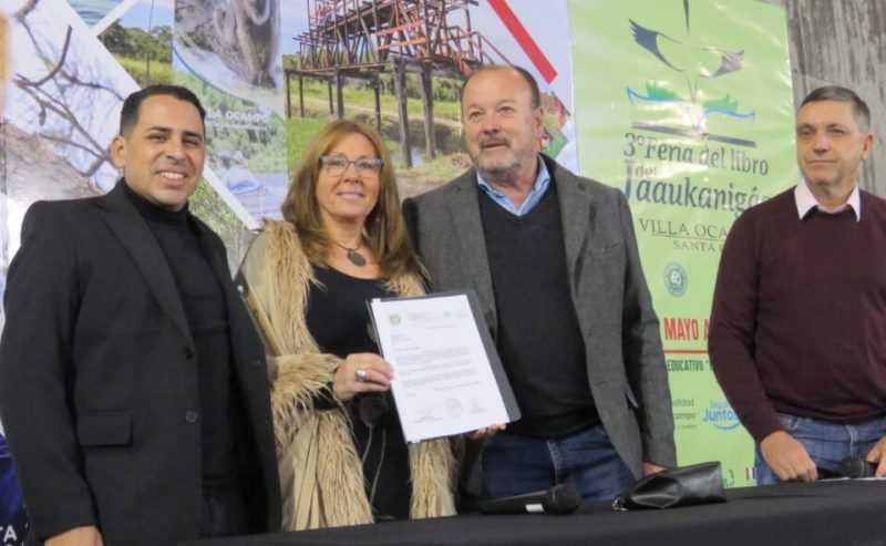 Durante la mañana del viernes 20 de mayo, en el marco de la 3ª Feria del Libro del Jaaukanigás y en el escenario principal, el intendente Enrique Paduán, junto al secretario de Cultura y Comunicación, Guillermo Scarpín; la Lic. Claudia Giaccone y el Director de la Usina VII, Prof. Carlos Beneventano, efectuaron la firma de adhesión de la Municipalidad de Villa Ocampo al Ente Cultural Santafesino.