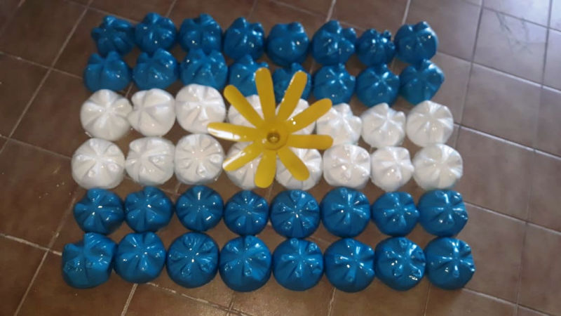 “El Área de Turismo de la Municipalidad de Florencia prepara adornos para el Día de la Bandera, reutilizando materiales de plástico para confeccionarlos y así decorar y embellecer la ciudad” precisó la secretaria de esta área Patricia Demartin.