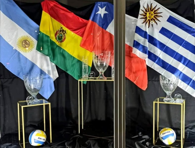 La misma cuenta con las banderas de los países participantes y las copas de cristal que estarán en disputa durante el desarrollo de una de las competencias de vóley juvenil más importantes que se organizan anualmente en el país.