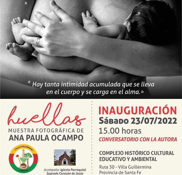 La Comuna de Villa Guillermina, junto a la Iglesia Parroquial Sagrado Corazón de Jesús, invitan a toda la comunidad a la inauguración de la muestra fotográfica HUELLAS, de Ana Paula Ocampo, a realizarse el día Sábado 23 de Julio, a las 15.00 horas, en el Complejo Histórico, Cultural, Educativo y Ambiental.