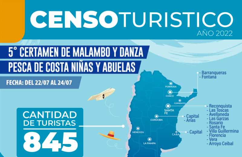 La Secretaría de Sistemas Productivos y Medio Ambiente de la Municipalidad de Villa Ocampo informa que la Dirección de Turismo llevó a cabo un nuevo censo turístico durante el fin de semana pasado, cuando esta ciudad fue sede del 5º Certamen de Malambo y Danza “Corazón del Jaaukanigás”, como así también la pesca de costa para niñas y abuelas en el marco de la próxima 8º Fiesta Provincial de Pesca Embarcada para Mujeres.