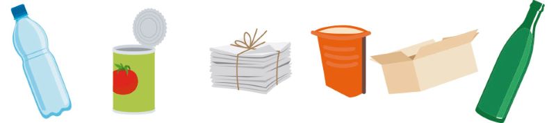 · Plásticos: botellas, tapas, papel, sachets, bidones, potes, papel film, vajilla descartable.