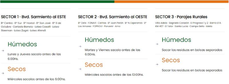 Los residuos húmedos serán retirados dos días a la semana según sector. Es fundamental tener dos cestos de residuos en tu casa para poder hacer una correcta separación.