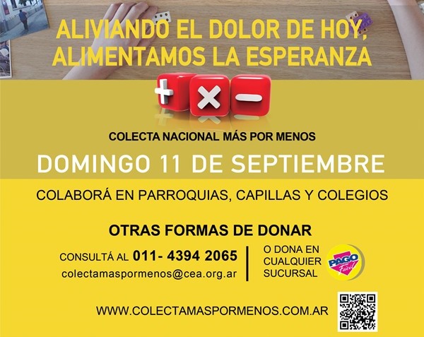 La 53ª Edición de la Colecta Más por Menos 2022 se realizará el domingo 11 de Setiembre próximo, agradeciendo vivamente la ayuda que puedan brindar en esta Campaña, especialmente en este año tan difícil para muchos argentinos.