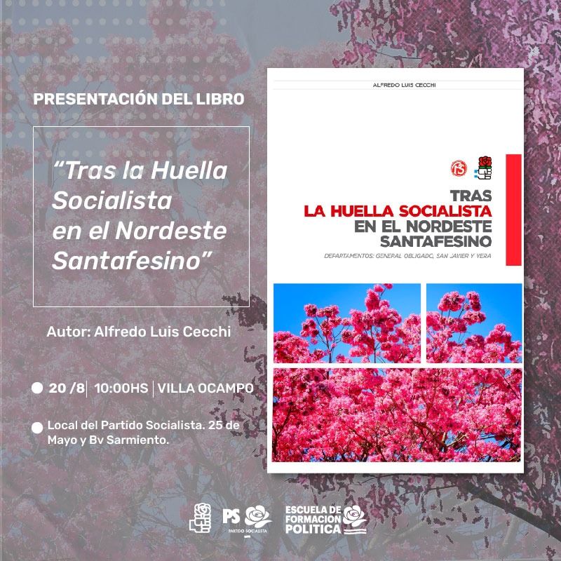 La Legisladora Provincial, María Laura Corgniali, informa a la ciudadanía y medios de comunicación que se llevará a cabo dos presentaciones del libro del autor Alfredo Luis Cecchi que rescata la historia del Partido Socialista en nuestro norte, en especial en los años de La Forestal, con la participación política, cultural y electoral de los primeros representantes socialistas.