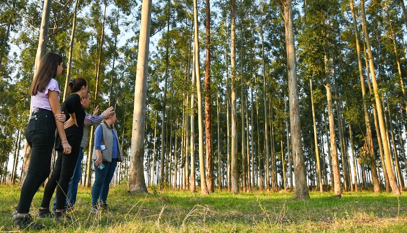 A continuación, la comitiva del Ministerio de Ambiente y Cambio Climático visitó una plantación de eucaliptos y pinos, que forma parte de un ensayo modelo silvopastoril para producciones sostenibles mediante la incorporación de biomasa que permitan la reducción de la huella de carbono. El mismo es llevado adelante por el Centro Operativo Experimental Tacuarendí (COET) del Ministerio de Producción, Ciencia y Tecnología.