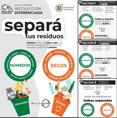 La Secretaría de Sistemas Productivos y Medio Ambiente de la Municipalidad de Villa Ocampo informa que a partir del lunes 22 de agosto comenzará a implementarse el nuevo sistema de gestión de residuos con el objetivo de recuperar los materiales reciclables con destino a la planta de clasificación.