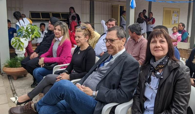 Las Toscas: Leandro Chamorro y su gabinete en el acto a San Martín en la escuela «Tierra del Fuego»