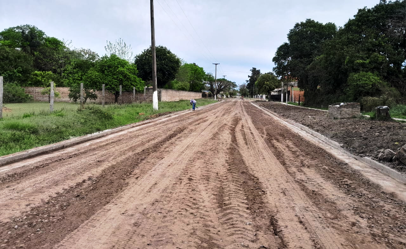 – Continúa la carga de hormigón en moldes de cordón cuneta por calle Langworthy entre Güemes y la entrada del barrio San Pantaleón;