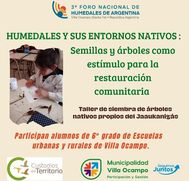 En el marco de la realización del 3º Foro Nacional de Humedales de Argentina, la organización “Custodios del Territorio”, con la coordinación local de la concejal Marisa Dubouloy, realizarán un taller de siembra de árboles nativos con alumnos de 6º grado de las escuelas primarias del distrito.