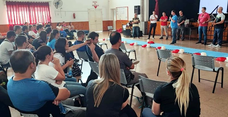 La capacitación estuvo dirigida a docentes de Educación Física de la micro región, y fue brindada por el enfermero profesional Rafael Corchuelo y el ayudante Mario Nievas, contando con la participación de los directivos del Centro de Educación Física Nº 35 de nuestra ciudad, Sergio Chacón y Horacio Raffin.