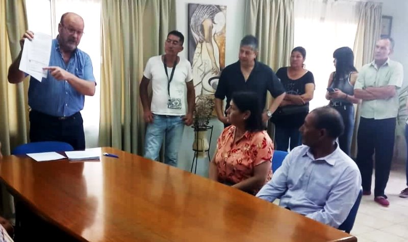 El intendente Enrique Paduán, junto al secretario de Gobierno y Seguridad de la Municipalidad de Villa Ocampo, Eduardo José, hicieron entrega de 16 nuevas pensiones sociales Ley 5110 tramitadas desde el municipio.