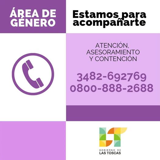 Desde el gobierno de la ciudad de Las Toscas informa que cuenta con una mesa de género que trabaja continuamente a través del desarrollo de estrategias para crear redes de lazos de confianza, acompañamiento y asesoría para las mujeres que se encuentran en contexto de violencia de género.