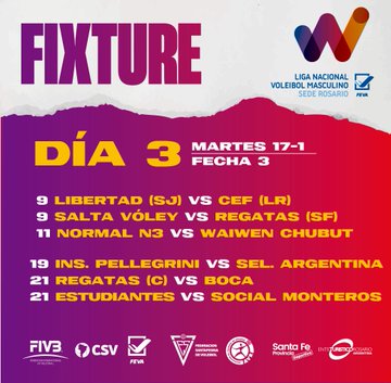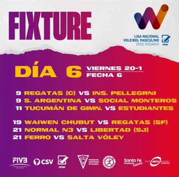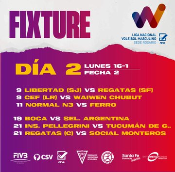 ➡️ Zona A: Normal 3, Libertad (San Jerónimo), Ferro Carril Oeste, Salta Voley, CEF Nro 5 (La Rioja), Regatas Santa Fe y Waiwen (Comodoro Rivadavia).