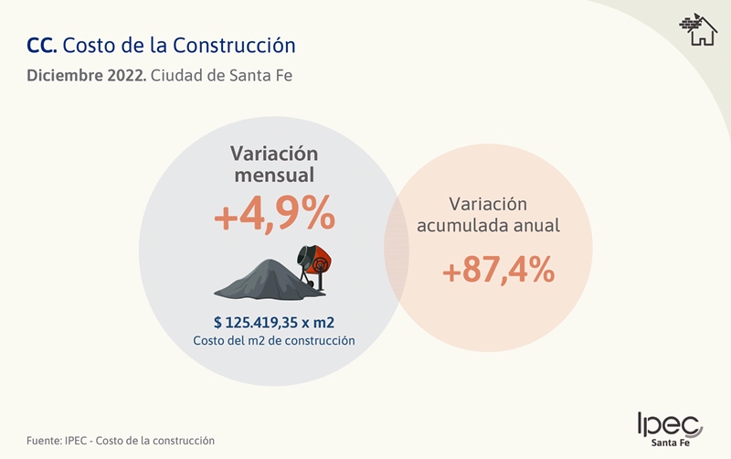Costo de la Construcción en la provincia Santa Fe, mes diciembre 2022